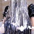 茶髪ロング人妻 髪フェチ美容師と閉店後のシャンプー