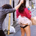 スカートめくり盗撮され生ハメ中出し許すパンチラ人妻