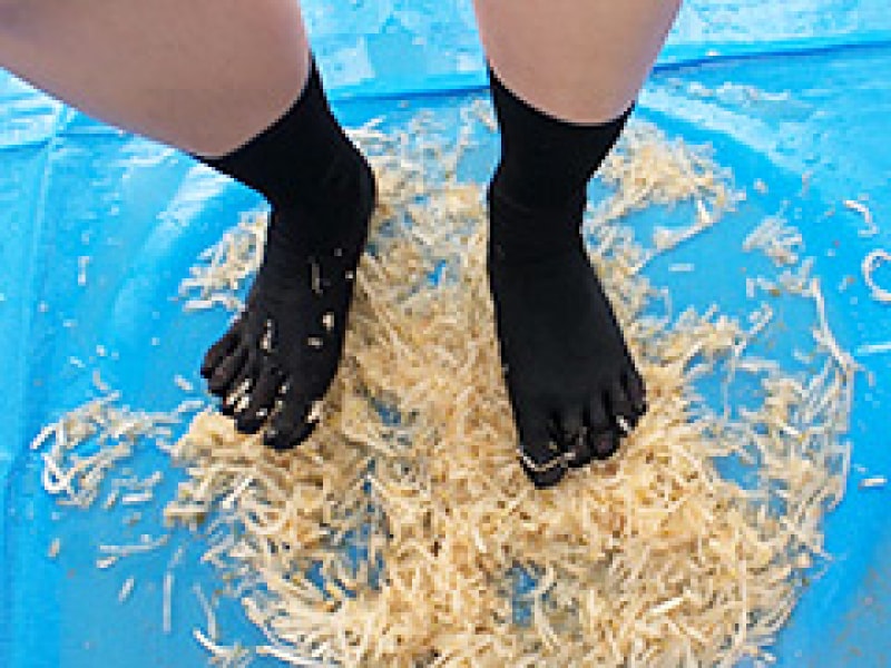 【本日のメニュー】もやし。新鮮なもやしって、結構シャキシャキでいい音がするのか。踏んで、さらにひねることで、ものすごい迫力のクラッシュ!指先で踏みしめて、五本指のソックスの特性を生かして、足指でつかんでみたり。もやしの上でジャンプすることで、もやしからの水分で、足指の間から水が跳ねる…。水たまりで遊ぶ子供のように、無邪気な気持ちにさせるクラッシュ!踏み締める時のしっとりした雪原のような音。黒のソックスも少し透けているところが、踏んでいる足を想像させて、官能的でもある。後半、クラッシャーの倉科ちゃんの甘めのお顔も映りますが、優しそうでおっとりした感じの彼女が、こんなに力強いクラッシュで踏みしめてくれるのかと思うと、ゾクゾクしてくるよな…。