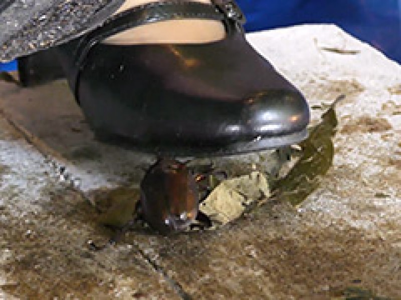 本編モザイク無し!いよいよクライマックスへ向けて残りを確かめながらCRUSH、パンツ丸出しでクラッシュクラッシュ、とにかく破壊音が凄いです。ブロックと靴の間でねじっているときは凄い音が出てます。くっついている葉っぱをゆっくりはがし、一気にクラッシュ、足にくっついてきそうなら一気にCRUSH!