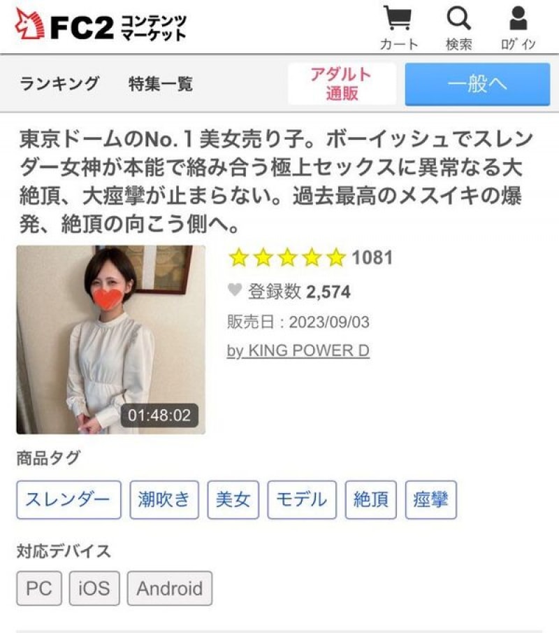 2023年FC2-PPV売上トップ「東京ドームビールNo.1売り子」、特定されて病む