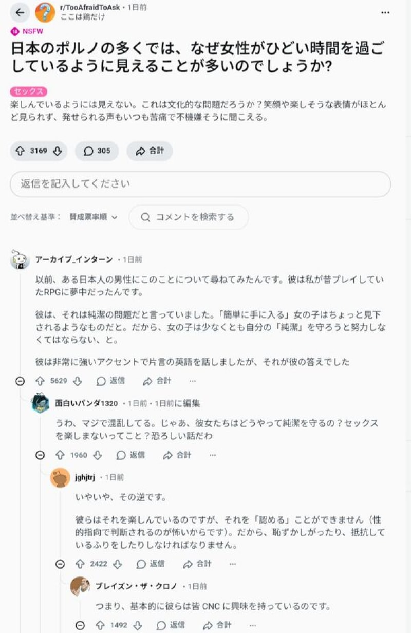 海外「なぜ日本はレイプ系や女性が苦しんでるAV作品が多いの?」